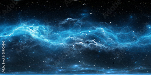 360 degree space background with nebula and stars, equirectangular projection, environment map. HDRI spherical panorama.
