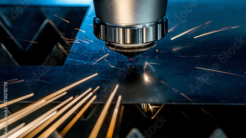 Laser, precyzyjne cięcie laserowe metalu. Efekty świetlne podczas cięcia laserowego.