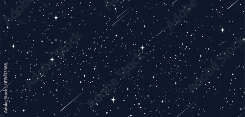 Starry space seamless pattern with sky stars in night galaxy, vector background. Space universe or dark black cosmos pattern with constellation, falling meteorites, comets and twinkling stars light