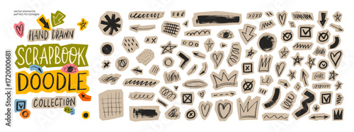 Playful scrapbook doodle set. Cute cutout elements for collage.