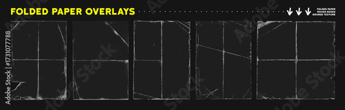 Vintage grunge old paper texture with wrinkles and folded effect. Rectangles and square old photo frames template collection. Grange and punk overlay folded paper texture. Worn, torn, weathered effect