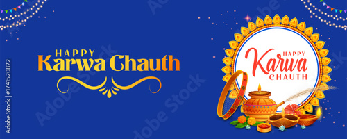 decorated pooja thali for greetings on Indian Hindu festival Happy Karwa Chauth