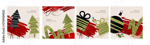 Merry Christmas and Happy New Year. Modern abstract vector illustrations for holiday greeting card, website and social media banner, marketing material.