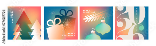 Set of Christmas and New Year holiday cards. Vector illustration templates for holiday greeting card, background, website and social media banner, marketing material.