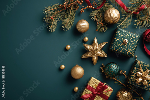 Festlicher Hintergrund Weihnachten mit Sternen und Christbaumkugeln