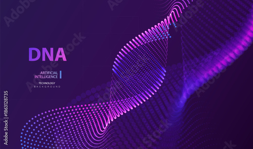 Futuristic DNA Artificial Intelligence banner. Medicine innovation vector. Biology dna molecule background. Ai genetic code particle design.