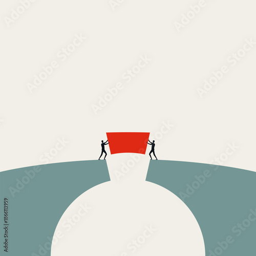 Business Cooperation and Teamwork Concept with Professionals Finishing a Bridge to Connect Success and Goals. Minimal Vector Illustration