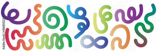 Colorful abstract wavy shapes, wave lines, swirls and curves set with smooth gradients, perfect for modern backgrounds, branding, and creative designs.