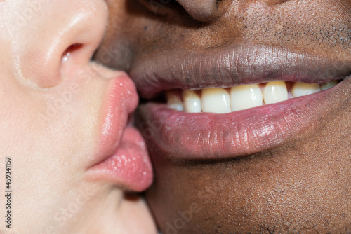 Kiss. I Love You. Couple In Love. Intimate relationship and sexual relations. Mixed race couple in love. Romantic moment.