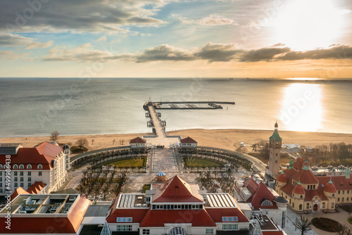 Aerial landscape of Sopot city at Baltic sea at sunrise, Poland