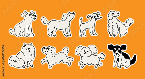 Cartoon doodle dogs and pets. Vector logo design template and graphic element for advertising, branding, posters and banners, hand drawn illustration with mascots