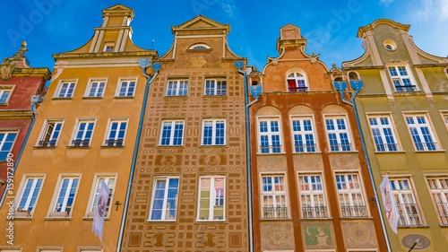 GDAŃSK, POLSKA: Piękne wąskie domy starego Gdańska.