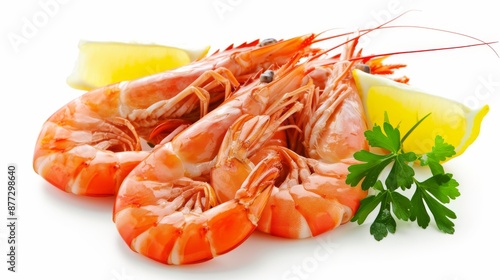 A mouth-watering arrangement of cooked prawns crevettes isolated on a pristine white background
